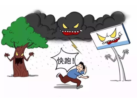 2、不要在緊靠供電線路的高大樹木或,大型廣告牌下以及路燈附近停留或避雨